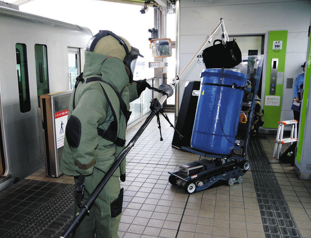 駅のホームは点字ブロックが多いため、処理筒のキャタピラを稼働させて、中の爆発物に衝撃を与えないように工夫して運んでいた。