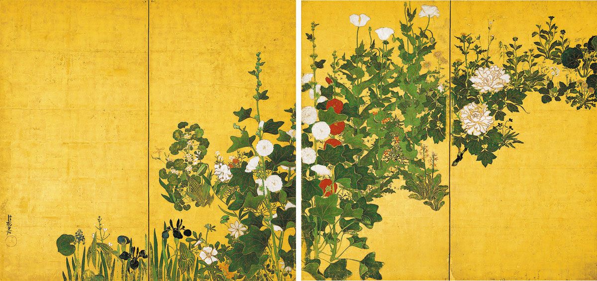 尾形光琳《夏草図屛風》18世紀日本・江戸時代紙本金地着色二曲一双各168.0×178.2センチ根津美術館蔵