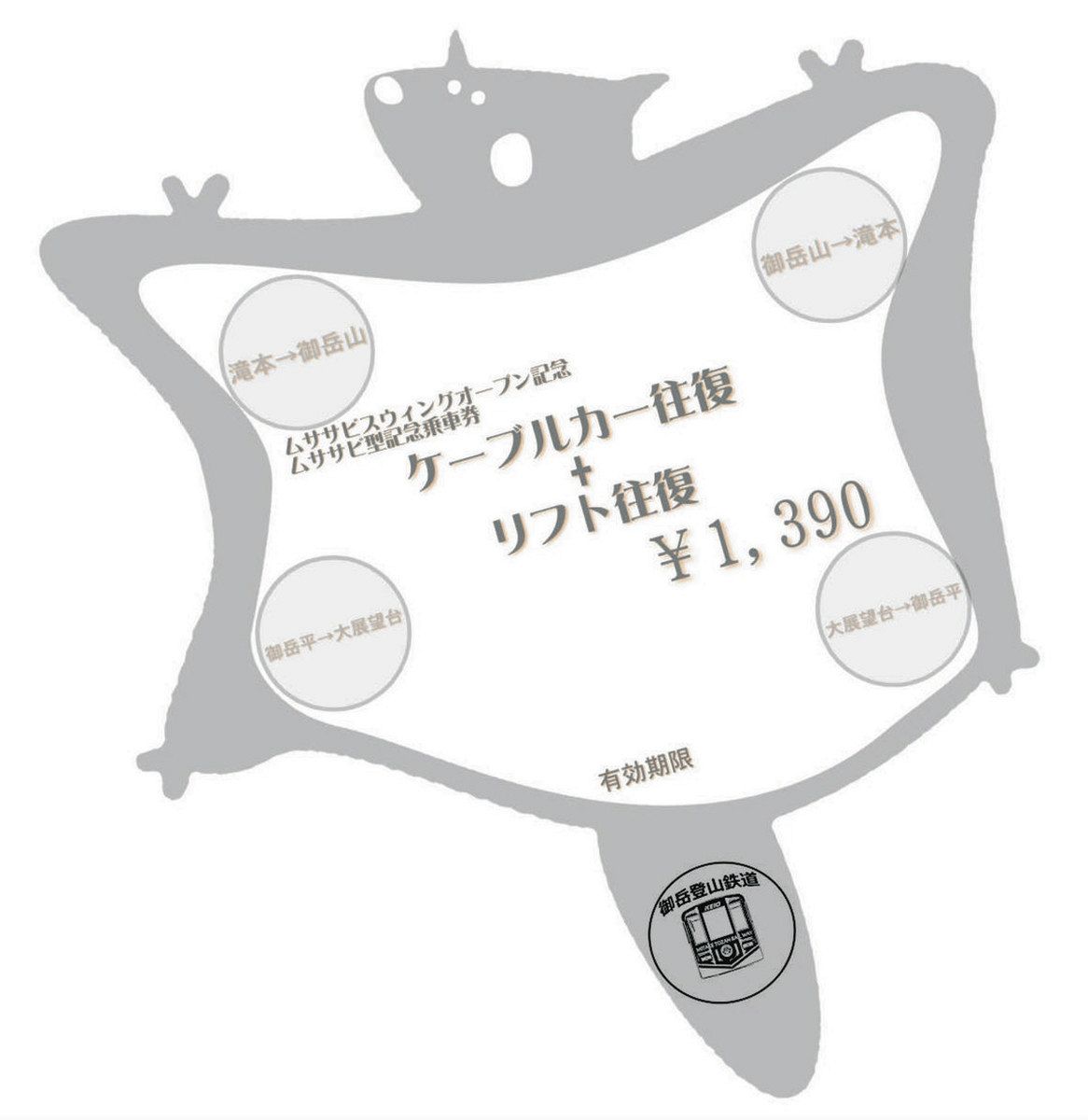 御岳登山鉄道が記念乗車券 29日までイベント デザインは「ムササビスウィング」