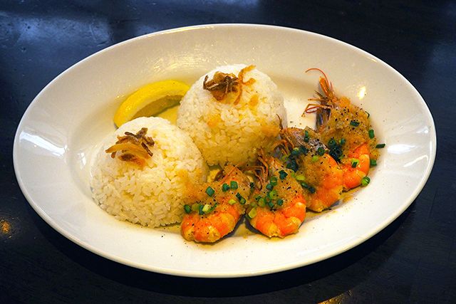 「ハワイ産カウアイシュリンプのガーリックシュリンプ&ライス」(2750円)。
