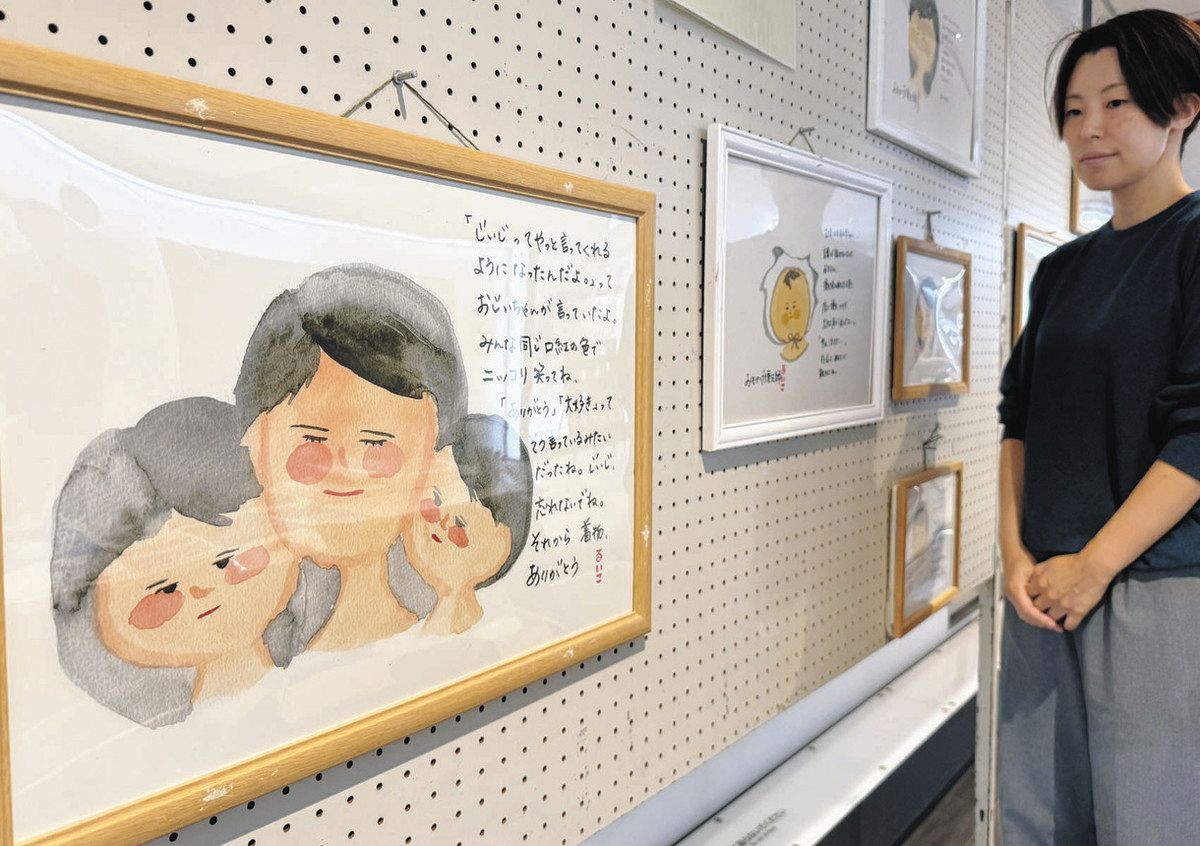 会場には、犠牲者の遺体の復元をボランティアで担った岩手県北上市の納棺師、笹原留似子さんが描いたイラストも並ぶ。温かみのある似顔絵に、笹原さんが遺族らに寄せたメッセージが添えられている。(佐藤航)
