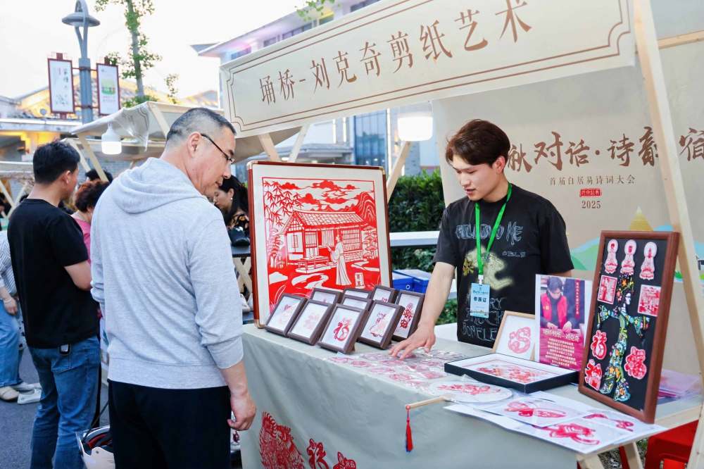 「汴水は流れ、泗水も流れ、千年の盛会へと続く!かつて舟遊びを楽しんだこの地が、今では符離の灯りが星よりも輝いているとは!」「この方があの不朽の名作『賦得古原草送別』を詠んだ白楽天先生!?ご覧ください、この汴河の新しい橋は、詩に詠まれた『晴翠が荒城に接す』という情景よりもにぎやかですよ!」特別に設置されたAI白居易とのインタラクティブシーンは、観光客にとって不思議で幻想的な視聴覚体験を提供した。詩詞大会では無形文化遺産、グルメ、文化クリエイティブ商品などの要素に焦点を当てた特色体験エリアとクリエイティブマーケットが企画され、イベントテーマの雰囲気を表現したウォールも設置され、多くの市民や観光客が訪れ、写真撮影や体験を楽しんだ。